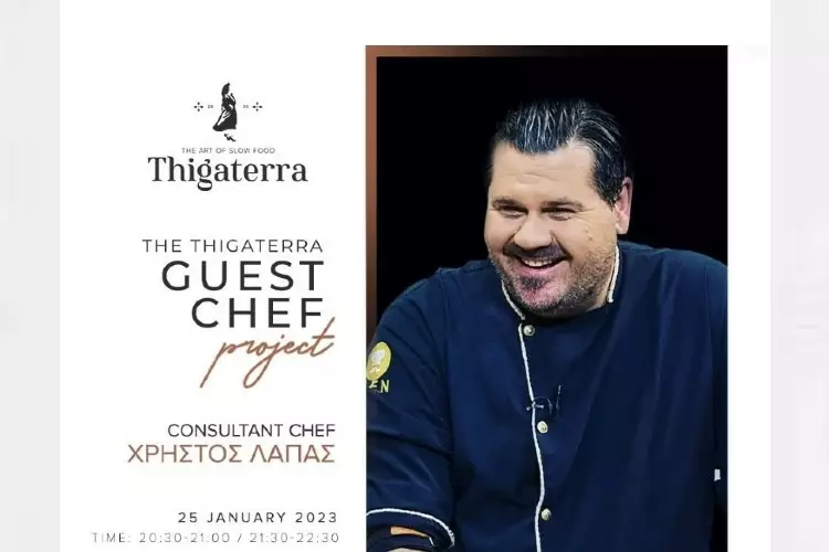 Η ανάρτηση του «Thigaterra» αναφέρει: «Με μεγάλη χαρά υποδεχόμαστε στην έναρξη του «Guest Chef Project» τον βραβευμένο #Chef Χρήστο Λάπα.