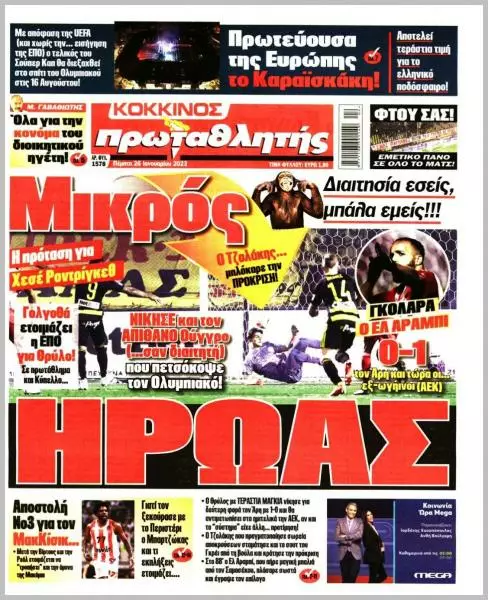 Τα αθλητικά πρωτοσέλιδα της Πέμπτης (26/1)