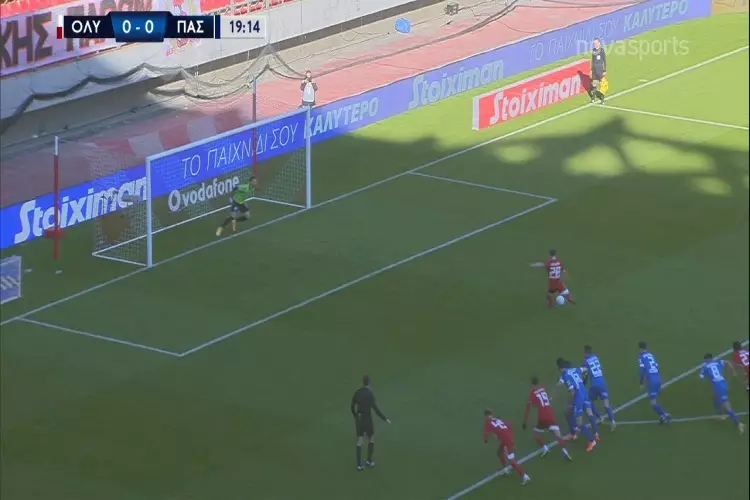 Ο Ελ Αραμπί κέρδισε το πέναλτι από τον πάλαι ποτέ πορτιέρε των ερυθρόλευκων, ο οποίος όμως είχε απάντηση στην εκτέλεση του Βαλμπουενά.
