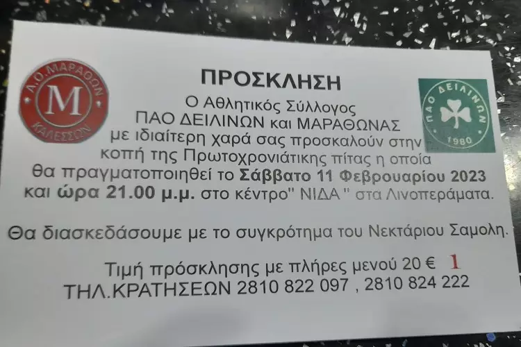 Συγκεκριμένα, τα δύο σωματεία θα κόψουν τη πρωτοχρονιάτικη πίτα τους το Σάββατο (11/2) στο κέντρο «Νίδα» στα Λινοπεράματα.