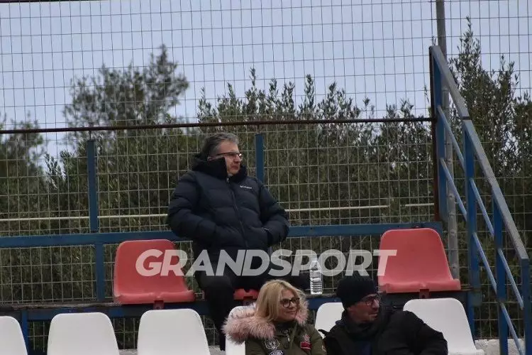 Ο Βασίλης Πλεσίτης ως… άμεσα ενδιαφερόμενος, καθώς η ομάδα του αγωνίζεται στην Α1 κατηγορία, βρίσκεται στο γήπεδο και «τσεκάρει» τις δύο ομάδες.