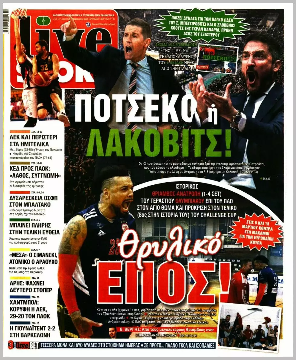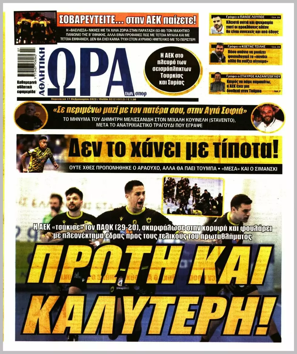 HOT NEWS ΝΙΚΗ-ΑΝΑΣΑ ΟΦΗ ΑΠΙΣΤΕΥΤΗ ΕΝΤΑΣΗ ΣΤΟ ΝΤΕΡΜΠΙ ΑΠΟΤΕΛΕΣΜΑΤΑ ΣΑΒΒΑΤΟΥ Α1 ΕΠΣΗ: ΤΕΡΑΣΤΙΕΣ ΝΙΚΕΣ ΓΙΑ ΧΕΡΣΟΝΗΣΟ ΚΑΙ ΛΙΝΤΟ ΕΠΙΣΤΡΟΦΗ ΙΣΕΚΑ ΣΤΟΝ ΟΦΗ ΕΦΗΜΕΡΙΔΕΣΚΥΡΙΕΣ ΕΙΔΗΣΕΙΣ Τα αθλητικά πρωτοσέλιδα της Παρασκευής (17/2) Κώστας Παπαδόπουλος 17/02/2023 - 09:00 FacebookTwitterWhatsAppLinkedinEmailΤυπώνωCopy URL Διαβάστε όσα γράφουν τα πρωτοσέλιδα των αθλητικών εφημερίδων σε Αθήνα και Θεσσαλονίκη. ΔΙΑΒΑΣΤΕ ΕΠΙΣΗΣ: Αστέρας Μυρτιάς-Φαιστός 5-2: Τα highlights του αγώνα (vid) Β. Ανυφαντάκης: «Μέσα από τα παιχνίδια αλλάζουμε τη νοοτροπία μας» ΟΦΗ-Πανσερραϊκός 3-0: Τα highlights του αγώνα (vid) Τα αποτελέσματα στους αγώνες του Σαββάτου (13/12) και το πρόγραμμα της Κυριακής (14/12) Πρωτοφανής ένταση και τέσσερις αποβολές στο Χερσόνησος–Εργοτέλης! Α1 ΕΠΣΗ: Έβαλε φωτιά στο πρωτάθλημα η Χερσόνησος, μεγάλες νίκες για ΑΕΚ, Λίντο και Μινωική ΡΟΗ ΕΙΔΗΣΕΩΝ ΕΡΓΟΤΕΛΗΣ Η στιγμή της κουτουλιάς του Ηλία Κώτσιου στον Δημήτρη Μηλάκη! (vid) Κώστας Μεταξάκης 13/12/2025 23:48 ΑΣΤΕΡΑΣ ΜΥΡΤΙΑΣ Αστέρας Μυρτιάς-Φαιστός 5-2: Τα highlights του αγώνα (vid) Δημοσιογραφικό Τμήμα 13/12/2025 23:35 ΡΩΜΑΝΟΣ Β. Ανυφαντάκης: «Μέσα από τα παιχνίδια αλλάζουμε τη νοοτροπία μας» Δημήτρης Γιγουρτσής 13/12/2025 22:35 ΟΦΗ ΟΦΗ-Πανσερραϊκός 3-0: Τα highlights του αγώνα (vid) Δημήτρης Γιγουρτσής 13/12/2025 21:48 Α1 ΕΠΣΗ Τα αποτελέσματα στους αγώνες του Σαββάτου (13/12) και το πρόγραμμα της Κυριακής (14/12) Δημοσιογραφικό Τμήμα 13/12/2025 21:20 Β ΕΠΣΗ Β2 ΕΠΣΗ: Ισόπαλο το ντέρμπι κορυφής, νίκες για Τηγανίτη και Ατρόμητος Επισκοπής Δημήτρης Γιγουρτσής 13/12/2025 21:16 ΓΑΡΙΠΑ Μοιρασιά από την άσπρη βούλα για Γαρίπα και Δωριέα Δημήτρης Γιγουρτσής 13/12/2025 21:09 Όλες οι ειδήσεις ΔΗΜΟΦΙΛΗ Α1 ΕΠΣΗ Τα αποτελέσματα στους αγώνες του Σαββάτου (13/12) και το πρόγραμμα της Κυριακής (14/12) ΕΡΓΟΤΕΛΗΣ Πρωτοφανής ένταση και τέσσερις αποβολές στο Χερσόνησος–Εργοτέλης! Α1 ΕΠΣΗ Α1 ΕΠΣΗ: Έβαλε φωτιά στο πρωτάθλημα η Χερσόνησος, μεγάλες νίκες για ΑΕΚ, Λίντο και Μινωική ΕΡΓΟΤΕΛΗΣ Ηλ. Κώτσιος: «Υπάρχει μένος απέναντι στον Εργοτέλη, με 11 παίκτες δεν υπήρχε περίπτωση να μην κερδίσουμε» (vid) ΧΕΡΣΟΝΗΣΟΣ Άδικη και ακατανόητη αποβολή για τον Λουμπάκη!