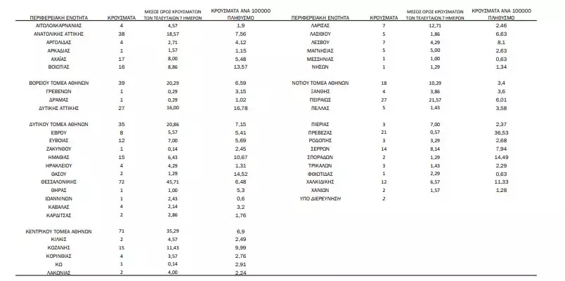 Αναλυτικά τα κρούσματα ανά περιοχή: