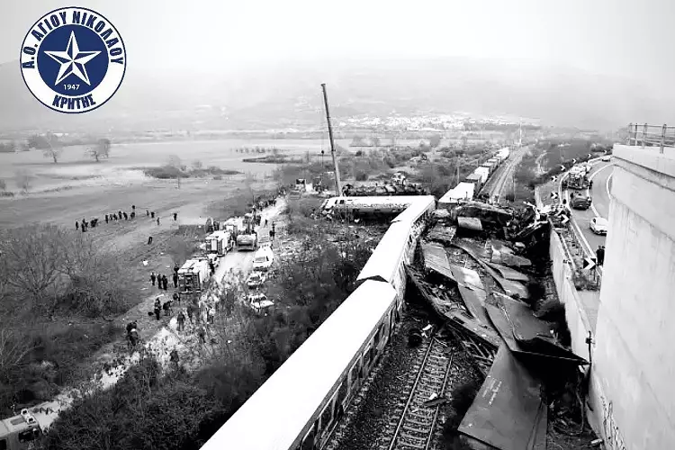 Η ανακοίνωση αναφέρει: «Το ΔΣ, οι προπονητές και οι ποδοσφαιριστές της ομάδας μας εκφράζουμε τα ειλικρινή μας συλλυπητήρια στις οικογένειες των θυμάτων της τραγωδίας στα Τέμπη και τις πιο θερμές ευχές για ταχεία ανάρρωση των τραυματιών».