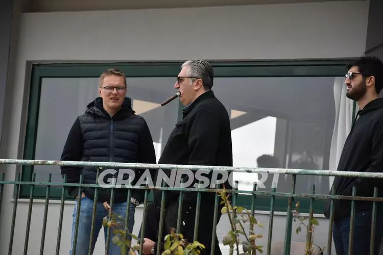 Ο Μιχάλης Μπούσης, συνοδευόταν από τον γιο του Δημήτρη, που δείχνει να έχει δεθεί με την ομάδα, ενώ ο Βάλντας Νταμπράουσκας, ήταν μαζί με συνεργάτες του.