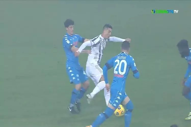 Ο Ρονάλντο μπήκε ορεξάτος στο παιχνίδι με τη Νάπολι, αφού κατάφερε να “χορέψει” την άμυνα της Νάπολι, όμως το σουτ του πέρασε ψηλά άουτ.