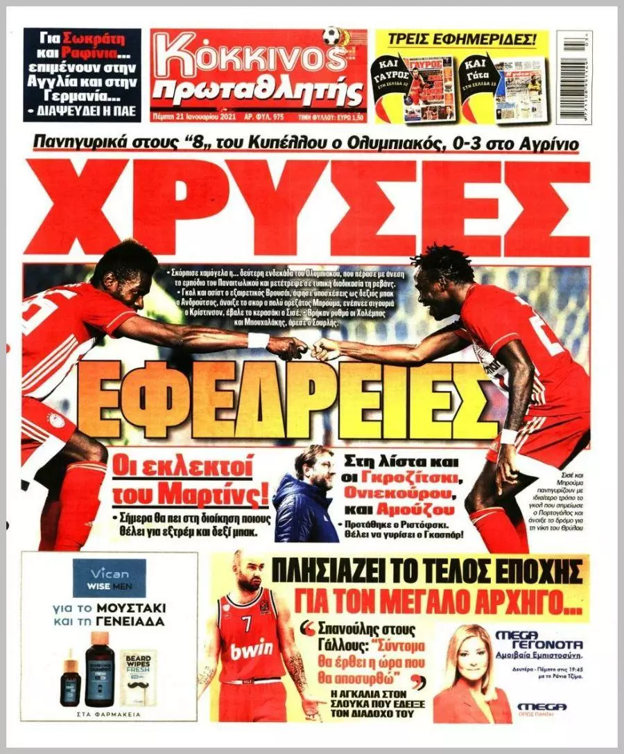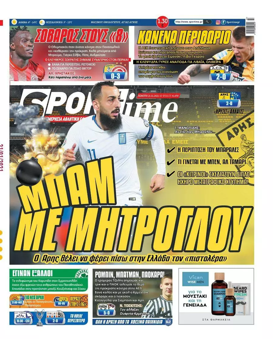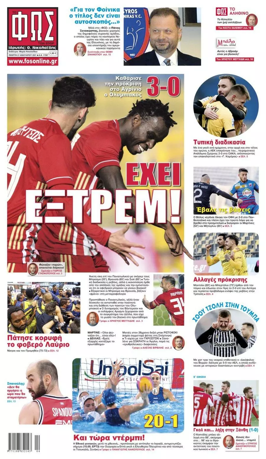 HOT NEWS LIVE ΤΑ ΠΑΙΧΝΙΔΙΑ ΤΗΣ ΚΥΡΙΑΚΗΣ (2/11) ΑΠΟΤΕΛΕΣΜΑΤΑ ΣΑΒΒΑΤΟΥ (1/11) Α1 ΕΠΣΗ ΠΡΟΓΡΑΜΜΑ ΗΜΕΡΑΣ Α2 ΕΠΣΗ ΠΡΟΓΡΑΜΜΑ ΗΜΕΡΑΣ Γ ΕΘΝΙΚΗ ΠΡΟΓΡΑΜΜΑ ΗΜΕΡΑΣ ΕΦΗΜΕΡΙΔΕΣΚΥΡΙΕΣ ΕΙΔΗΣΕΙΣ Τα αθλητικά πρωτοσέλιδα της ημέρας (21/01) Δημοσιογραφικό Τμήμα 21/01/2021 - 09:29 FacebookTwitterWhatsAppLinkedin&body=https://grandsport.gr/28756-ta-athlitika-protoselida-tis-imeras-21-01/" title="Email" >EmailΤυπώνωCopy URL Διαβάστε όσα γράφουν τα αθλητικά πρωτοσέλιδα της Πέμπτης, 21 Ιανουαρίου, σε Αθήνα και Θεσσαλονίκη. ΔΙΑΒΑΣΤΕ ΕΠΙΣΗΣ: Β1 ΕΠΣΗ: Μεγάλες νίκες για Θρίαμβο, Ελπίδες και Δόξα Γαλιάς Π. Κορδονούρης: «Δεν μπήκαμε ποτέ στο παιχνίδι, πρέπει να το διορθώσουμε μέσα από τη δουλειά» Δ. Τσέρος: «Ο Ποσειδώνας είναι ιστορική ομάδα και πρέπει να τον φέρουμε εκεί που του αξίζει» Τα αποτελέσματα του Σαββάτου (1/11) και το πρόγραμμα της Κυριακής (2/11) LIVE οι αγώνες της Κυριακής (02/11) Α1 ΕΠΣΗ: Επέστρεψε στις νίκες η Χερσόνησος, σπουδαία ανατροπή Αλμυρού ΡΟΗ ΕΙΔΗΣΕΩΝ Β ΕΠΣΗ Β1 ΕΠΣΗ: Μεγάλες νίκες για Θρίαμβο, Ελπίδες και Δόξα Γαλιάς Δημήτρης Γιγουρτσής 02/11/2025 15:09 ΟΦΑΜ Π. Κορδονούρης: «Δεν μπήκαμε ποτέ στο παιχνίδι, πρέπει να το διορθώσουμε μέσα από τη δουλειά» Δημοσιογραφικό Τμήμα 02/11/2025 14:59 ΠΟΣΕΙΔΩΝΑΣ Δ. Τσέρος: «Ο Ποσειδώνας είναι ιστορική ομάδα και πρέπει να τον φέρουμε εκεί που του αξίζει» Πολυχρόνης Αγγελάκης 02/11/2025 14:21 ΑΤΡΟΜΗΤΟΣ ΕΠΙΣΚΟΠΗΣ Κ. Κεφάκης: «Είναι μια ιστορική μέρα για εμάς – Ήταν ένα πραγματικό ντέρμπι» Πολυχρόνης Αγγελάκης 02/11/2025 14:09 LIVE LIVE οι αγώνες της Κυριακής (02/11) Δημήτρης Γιγουρτσής 02/11/2025 14:00 ΑΤΡΟΜΗΤΟΣ ΕΠΙΣΚΟΠΗΣ Εικόνες από το Ατρόμητος Επισκοπής-Ποσειδώνας Πολυχρόνης Αγγελάκης 02/11/2025 13:57 ΚΟΥΝΑΒΟΙ Σημαντικό διπλό για τον Δωριέα με “ήρωα” τον Σ. Κακουλαντωνάκη στο φινάλε Δημοσιογραφικό Τμήμα 02/11/2025 13:44 Όλες οι ειδήσεις ΔΗΜΟΦΙΛΗ Α1 ΕΠΣΗ Τα αποτελέσματα του Σαββάτου (1/11) και το πρόγραμμα της Κυριακής (2/11) LIVE LIVE οι αγώνες της Κυριακής (02/11) Α1 ΕΠΣΗ Α1 ΕΠΣΗ: Επέστρεψε στις νίκες η Χερσόνησος, σπουδαία ανατροπή Αλμυρού ΑΛΜΥΡΟΣ Οικογενειακή υπόθεση το Αλμυρός-Ρούβας! ΟΦΗ Ανατροπή και ήττα για την Κ19 του ΟΦΗ στην Τρίπολη
