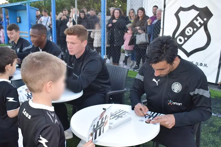 Οι ποδοσφαιριστές της ομάδας μας Πραξιτέλης Βούρος, Sebastian Gronning, Samuel Yohou & Γιάννης Αποστολάκης, επισκέφθηκαν τα παιδιά της ακαδημίας του Ερασιτέχνη ΟΦΗ, φωτογραφήθηκαν μαζί τους και τους μοίρασαν αυτόγραφα!