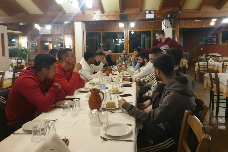 Μια πολύ όμορφη βραδιά σε οικογενειακό κλίμα, με στιγμές χαλάρωσης και πολύ καλό φαγητό ήταν η σημερινή για τον ΠΟΑ, με τους ποδοσφαιριστές και το τεχνικό επιτελείο να γευματίζει στην ταβέρνα «Αλωνάκι» στη Ροδιά, με το τραπέζι να το προσφέρει ο γυμναστής της ομάδας Μάνος Μπελιμπασάκης.