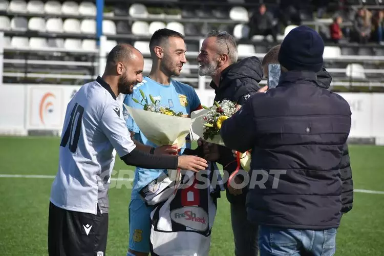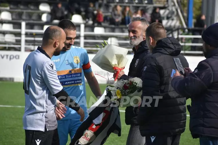 Πριν την σέντρα της αναμέτρησης οι Μανώλης Λεμονάκης, Γιώργος Καλομοίρης, Νίκος Παπαδιός και Μύρων Ανωγειανάκης τίμησαν με ανθοδέσμες και μια φανέλα με το νούμερο 8 (αυτό φορούσε στον ΠΑΟΚ τέσσερα χρόνια), τον Θοδωρή Σκούφο για την προσφορά του στο σωματείο.