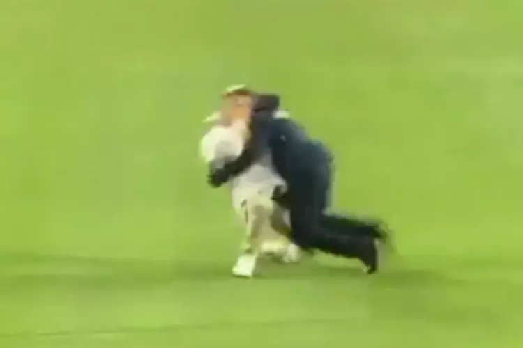 Στο βίντεο που κυκλοφορεί στα social media, διακρίνεται ο φίλος του μπέιζμπολ να γονατίζει και να αποθεώνεται, προτού βρεθεί… φαρδύς πλατύς ξάπλα μετά από επέμβαση ανθρώπου της ασφάλειας…