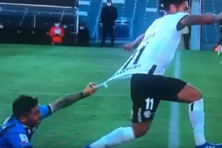Στο πρωτάθλημα της Χιλής,συνέβη κάτι εντυπωσιακό, αφού ο αμυνόμενος παίκτες στην προσπάθεια του να σταματήσει τον αντίπαλο τον έπιασε από την φανέλα και δεν τον άφηνε… κυριολεκτικά.