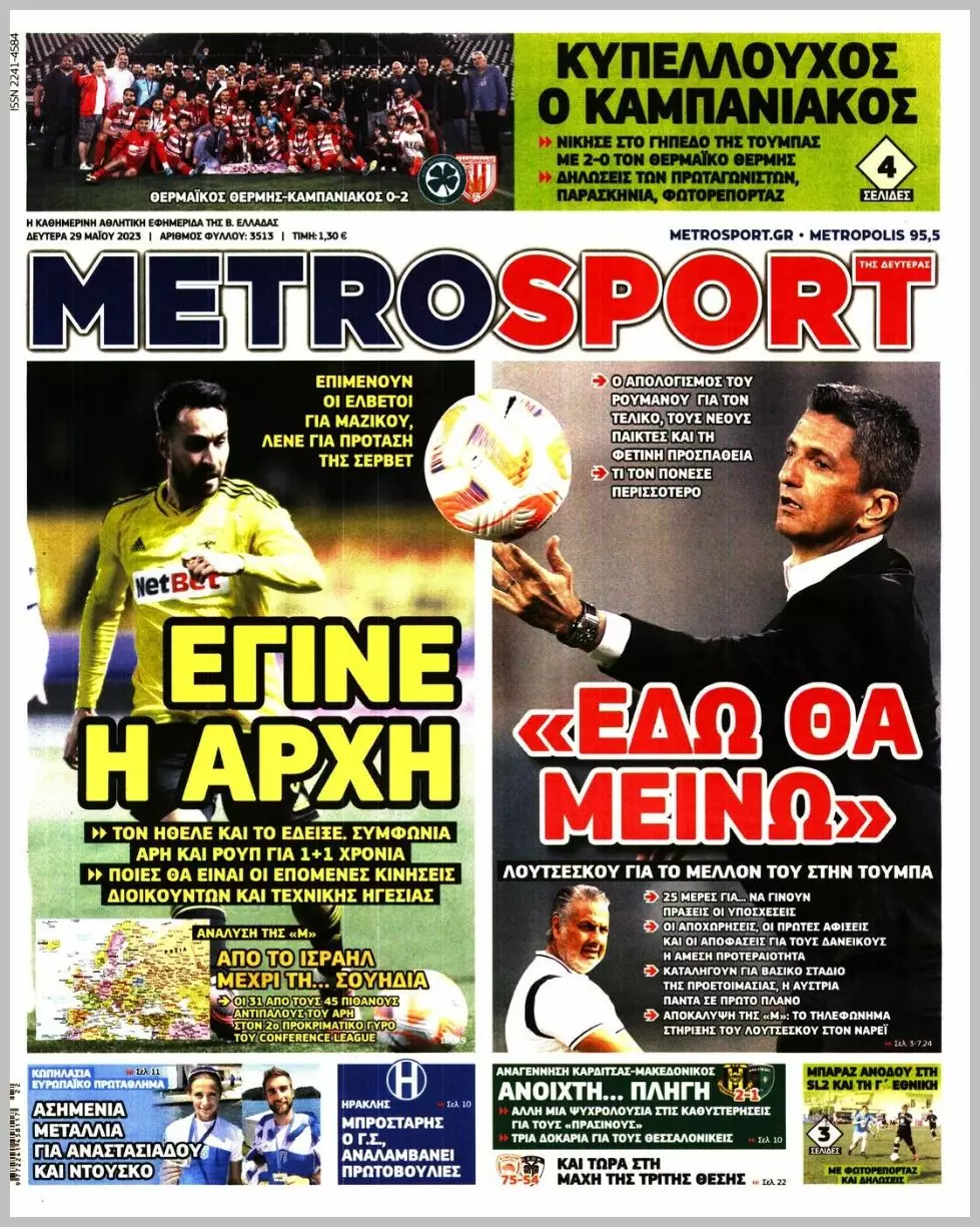 HOT NEWS ΝΙΚΗ-ΑΝΑΣΑ ΟΦΗ ΑΠΙΣΤΕΥΤΗ ΕΝΤΑΣΗ ΣΤΟ ΝΤΕΡΜΠΙ ΑΠΟΤΕΛΕΣΜΑΤΑ ΣΑΒΒΑΤΟΥ Α1 ΕΠΣΗ: ΤΕΡΑΣΤΙΕΣ ΝΙΚΕΣ ΓΙΑ ΧΕΡΣΟΝΗΣΟ ΚΑΙ ΛΙΝΤΟ ΕΠΙΣΤΡΟΦΗ ΙΣΕΚΑ ΣΤΟΝ ΟΦΗ ΕΦΗΜΕΡΙΔΕΣΚΥΡΙΕΣ ΕΙΔΗΣΕΙΣ Τα αθλητικά πρωτοσέλιδα της Δευτέρας (29/5) Κώστας Παπαδόπουλος 29/05/2023 - 09:00 FacebookTwitterWhatsAppLinkedinEmailΤυπώνωCopy URL Διαβάστε όσα γράφουν τα πρωτοσέλιδα των αθλητικών εφημερίδων σε Αθήνα και Θεσσαλονίκη. ΔΙΑΒΑΣΤΕ ΕΠΙΣΗΣ: Αστέρας Μυρτιάς-Φαιστός 5-2: Τα highlights του αγώνα (vid) Β. Ανυφαντάκης: «Μέσα από τα παιχνίδια αλλάζουμε τη νοοτροπία μας» ΟΦΗ-Πανσερραϊκός 3-0: Τα highlights του αγώνα (vid) Τα αποτελέσματα στους αγώνες του Σαββάτου (13/12) και το πρόγραμμα της Κυριακής (14/12) Πρωτοφανής ένταση και τέσσερις αποβολές στο Χερσόνησος–Εργοτέλης! Α1 ΕΠΣΗ: Έβαλε φωτιά στο πρωτάθλημα η Χερσόνησος, μεγάλες νίκες για ΑΕΚ, Λίντο και Μινωική ΡΟΗ ΕΙΔΗΣΕΩΝ ΕΡΓΟΤΕΛΗΣ Η στιγμή της κουτουλιάς του Ηλία Κώτσιου στον Δημήτρη Μηλάκη! (vid) Κώστας Μεταξάκης 13/12/2025 23:48 ΑΣΤΕΡΑΣ ΜΥΡΤΙΑΣ Αστέρας Μυρτιάς-Φαιστός 5-2: Τα highlights του αγώνα (vid) Δημοσιογραφικό Τμήμα 13/12/2025 23:35 ΡΩΜΑΝΟΣ Β. Ανυφαντάκης: «Μέσα από τα παιχνίδια αλλάζουμε τη νοοτροπία μας» Δημήτρης Γιγουρτσής 13/12/2025 22:35 ΟΦΗ ΟΦΗ-Πανσερραϊκός 3-0: Τα highlights του αγώνα (vid) Δημήτρης Γιγουρτσής 13/12/2025 21:48 Α1 ΕΠΣΗ Τα αποτελέσματα στους αγώνες του Σαββάτου (13/12) και το πρόγραμμα της Κυριακής (14/12) Δημοσιογραφικό Τμήμα 13/12/2025 21:20 Β ΕΠΣΗ Β2 ΕΠΣΗ: Ισόπαλο το ντέρμπι κορυφής, νίκες για Τηγανίτη και Ατρόμητος Επισκοπής Δημήτρης Γιγουρτσής 13/12/2025 21:16 ΓΑΡΙΠΑ Μοιρασιά από την άσπρη βούλα για Γαρίπα και Δωριέα Δημήτρης Γιγουρτσής 13/12/2025 21:09 Όλες οι ειδήσεις ΔΗΜΟΦΙΛΗ Α1 ΕΠΣΗ Τα αποτελέσματα στους αγώνες του Σαββάτου (13/12) και το πρόγραμμα της Κυριακής (14/12) ΕΡΓΟΤΕΛΗΣ Πρωτοφανής ένταση και τέσσερις αποβολές στο Χερσόνησος–Εργοτέλης! Α1 ΕΠΣΗ Α1 ΕΠΣΗ: Έβαλε φωτιά στο πρωτάθλημα η Χερσόνησος, μεγάλες νίκες για ΑΕΚ, Λίντο και Μινωική ΕΡΓΟΤΕΛΗΣ Ηλ. Κώτσιος: «Υπάρχει μένος απέναντι στον Εργοτέλη, με 11 παίκτες δεν υπήρχε περίπτωση να μην κερδίσουμε» (vid) ΧΕΡΣΟΝΗΣΟΣ Άδικη και ακατανόητη αποβολή για τον Λουμπάκη!