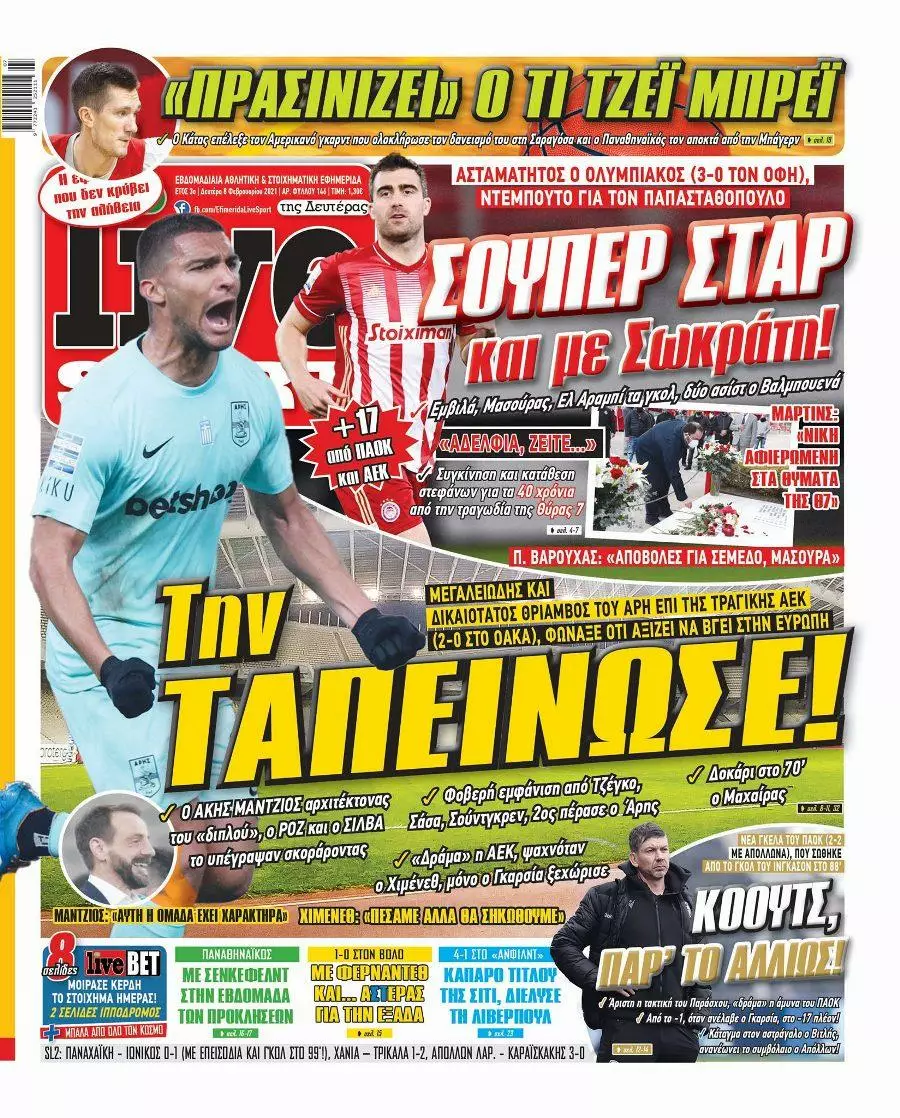 HOT NEWS ΝΙΚΗ-ΑΝΑΣΑ ΟΦΗ ΑΠΙΣΤΕΥΤΗ ΕΝΤΑΣΗ ΣΤΟ ΝΤΕΡΜΠΙ ΑΠΟΤΕΛΕΣΜΑΤΑ ΣΑΒΒΑΤΟΥ Α1 ΕΠΣΗ: ΤΕΡΑΣΤΙΕΣ ΝΙΚΕΣ ΓΙΑ ΧΕΡΣΟΝΗΣΟ ΚΑΙ ΛΙΝΤΟ ΕΠΙΣΤΡΟΦΗ ΙΣΕΚΑ ΣΤΟΝ ΟΦΗ ΕΦΗΜΕΡΙΔΕΣΚΥΡΙΕΣ ΕΙΔΗΣΕΙΣ Τα πρωτοσέλιδα των αθλητικών εφημερίδων(08/02) Δημοσιογραφικό Τμήμα 08/02/2021 - 08:51 FacebookTwitterWhatsAppLinkedinEmailΤυπώνωCopy URL Δείτε παρακάτω τα πρωτοσέλιδα των αθλητικών εφημερίδων για σήμερα Δευτέρα 8 Φεβρουαρίου του 2021. ΔΙΑΒΑΣΤΕ ΕΠΙΣΗΣ: Αστέρας Μυρτιάς-Φαιστός 5-2: Τα highlights του αγώνα (vid) Β. Ανυφαντάκης: «Μέσα από τα παιχνίδια αλλάζουμε τη νοοτροπία μας» ΟΦΗ-Πανσερραϊκός 3-0: Τα highlights του αγώνα (vid) Τα αποτελέσματα στους αγώνες του Σαββάτου (13/12) και το πρόγραμμα της Κυριακής (14/12) Πρωτοφανής ένταση και τέσσερις αποβολές στο Χερσόνησος–Εργοτέλης! Α1 ΕΠΣΗ: Έβαλε φωτιά στο πρωτάθλημα η Χερσόνησος, μεγάλες νίκες για ΑΕΚ, Λίντο και Μινωική ΡΟΗ ΕΙΔΗΣΕΩΝ ΕΡΓΟΤΕΛΗΣ Η στιγμή της κουτουλιάς του Ηλία Κώτσιου στον Δημήτρη Μηλάκη! (vid) Κώστας Μεταξάκης 13/12/2025 23:48 VIDEO Αστέρας Μυρτιάς-Φαιστός 5-2: Τα highlights του αγώνα (vid) Δημοσιογραφικό Τμήμα 13/12/2025 23:35 ΡΩΜΑΝΟΣ Β. Ανυφαντάκης: «Μέσα από τα παιχνίδια αλλάζουμε τη νοοτροπία μας» Δημήτρης Γιγουρτσής 13/12/2025 22:35 ΟΦΗ ΟΦΗ-Πανσερραϊκός 3-0: Τα highlights του αγώνα (vid) Δημήτρης Γιγουρτσής 13/12/2025 21:48 Α1 ΕΠΣΗ Τα αποτελέσματα στους αγώνες του Σαββάτου (13/12) και το πρόγραμμα της Κυριακής (14/12) Δημοσιογραφικό Τμήμα 13/12/2025 21:20 Β ΕΠΣΗ Β2 ΕΠΣΗ: Ισόπαλο το ντέρμπι κορυφής, νίκες για Τηγανίτη και Ατρόμητος Επισκοπής Δημήτρης Γιγουρτσής 13/12/2025 21:16 ΓΑΡΙΠΑ Μοιρασιά από την άσπρη βούλα για Γαρίπα και Δωριέα Δημήτρης Γιγουρτσής 13/12/2025 21:09 Όλες οι ειδήσεις ΔΗΜΟΦΙΛΗ Α1 ΕΠΣΗ Τα αποτελέσματα στους αγώνες του Σαββάτου (13/12) και το πρόγραμμα της Κυριακής (14/12) ΕΡΓΟΤΕΛΗΣ Πρωτοφανής ένταση και τέσσερις αποβολές στο Χερσόνησος–Εργοτέλης! Α1 ΕΠΣΗ Α1 ΕΠΣΗ: Έβαλε φωτιά στο πρωτάθλημα η Χερσόνησος, μεγάλες νίκες για ΑΕΚ, Λίντο και Μινωική ΕΡΓΟΤΕΛΗΣ Ηλ. Κώτσιος: «Υπάρχει μένος απέναντι στον Εργοτέλη, με 11 παίκτες δεν υπήρχε περίπτωση να μην κερδίσουμε» (vid) ΧΕΡΣΟΝΗΣΟΣ Άδικη και ακατανόητη αποβολή για τον Λουμπάκη!
