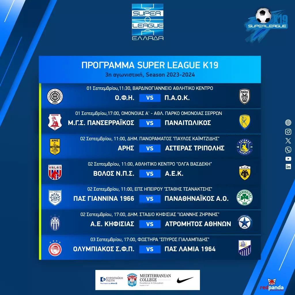 Με την 3η αγωνιστική ξεκινάει το πρωτάθλημα Κ19 της Super League, με τον ΟΦΗ να υποδέχεται τον ΠΑΟΚ στο ΒΑΚ στις 11:30.