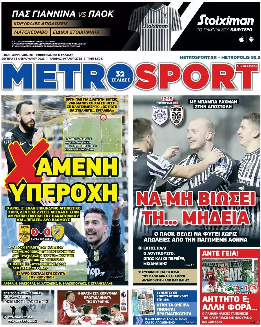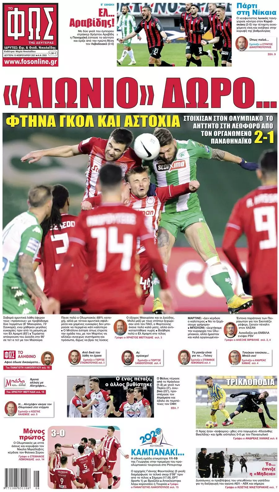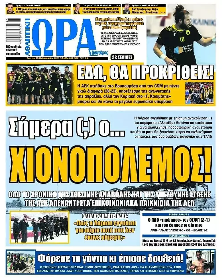 HOT NEWS ΝΙΚΗ-ΑΝΑΣΑ ΟΦΗ ΑΠΙΣΤΕΥΤΗ ΕΝΤΑΣΗ ΣΤΟ ΝΤΕΡΜΠΙ ΑΠΟΤΕΛΕΣΜΑΤΑ ΣΑΒΒΑΤΟΥ Α1 ΕΠΣΗ: ΤΕΡΑΣΤΙΕΣ ΝΙΚΕΣ ΓΙΑ ΧΕΡΣΟΝΗΣΟ ΚΑΙ ΛΙΝΤΟ ΕΠΙΣΤΡΟΦΗ ΙΣΕΚΑ ΣΤΟΝ ΟΦΗ ΕΦΗΜΕΡΙΔΕΣΚΥΡΙΕΣ ΕΙΔΗΣΕΙΣ Τα πρωτοσέλιδα των αθλητικών εφημερίδων(15/02) Δημοσιογραφικό Τμήμα 15/02/2021 - 09:00 FacebookTwitterWhatsAppLinkedinEmailΤυπώνωCopy URL Δείτε παρακάτω τα πρωτοσέλιδα των αθλητικών εφημερίδων για σήμερα Δευτέρα 15 Φεβρουαρίου του 2021. ΔΙΑΒΑΣΤΕ ΕΠΙΣΗΣ: Αστέρας Μυρτιάς-Φαιστός 5-2: Τα highlights του αγώνα (vid) Β. Ανυφαντάκης: «Μέσα από τα παιχνίδια αλλάζουμε τη νοοτροπία μας» ΟΦΗ-Πανσερραϊκός 3-0: Τα highlights του αγώνα (vid) Τα αποτελέσματα στους αγώνες του Σαββάτου (13/12) και το πρόγραμμα της Κυριακής (14/12) Πρωτοφανής ένταση και τέσσερις αποβολές στο Χερσόνησος–Εργοτέλης! Α1 ΕΠΣΗ: Έβαλε φωτιά στο πρωτάθλημα η Χερσόνησος, μεγάλες νίκες για ΑΕΚ, Λίντο και Μινωική ΡΟΗ ΕΙΔΗΣΕΩΝ ΕΡΓΟΤΕΛΗΣ Η στιγμή της κουτουλιάς του Ηλία Κώτσιου στον Δημήτρη Μηλάκη! (vid) Κώστας Μεταξάκης 13/12/2025 23:48 ΑΣΤΕΡΑΣ ΜΥΡΤΙΑΣ Αστέρας Μυρτιάς-Φαιστός 5-2: Τα highlights του αγώνα (vid) Δημοσιογραφικό Τμήμα 13/12/2025 23:35 ΡΩΜΑΝΟΣ Β. Ανυφαντάκης: «Μέσα από τα παιχνίδια αλλάζουμε τη νοοτροπία μας» Δημήτρης Γιγουρτσής 13/12/2025 22:35 ΟΦΗ ΟΦΗ-Πανσερραϊκός 3-0: Τα highlights του αγώνα (vid) Δημήτρης Γιγουρτσής 13/12/2025 21:48 Α1 ΕΠΣΗ Τα αποτελέσματα στους αγώνες του Σαββάτου (13/12) και το πρόγραμμα της Κυριακής (14/12) Δημοσιογραφικό Τμήμα 13/12/2025 21:20 Β ΕΠΣΗ Β2 ΕΠΣΗ: Ισόπαλο το ντέρμπι κορυφής, νίκες για Τηγανίτη και Ατρόμητος Επισκοπής Δημήτρης Γιγουρτσής 13/12/2025 21:16 ΓΑΡΙΠΑ Μοιρασιά από την άσπρη βούλα για Γαρίπα και Δωριέα Δημήτρης Γιγουρτσής 13/12/2025 21:09 Όλες οι ειδήσεις ΔΗΜΟΦΙΛΗ Α1 ΕΠΣΗ Τα αποτελέσματα στους αγώνες του Σαββάτου (13/12) και το πρόγραμμα της Κυριακής (14/12) ΕΡΓΟΤΕΛΗΣ Πρωτοφανής ένταση και τέσσερις αποβολές στο Χερσόνησος–Εργοτέλης! Α1 ΕΠΣΗ Α1 ΕΠΣΗ: Έβαλε φωτιά στο πρωτάθλημα η Χερσόνησος, μεγάλες νίκες για ΑΕΚ, Λίντο και Μινωική ΕΡΓΟΤΕΛΗΣ Ηλ. Κώτσιος: «Υπάρχει μένος απέναντι στον Εργοτέλη, με 11 παίκτες δεν υπήρχε περίπτωση να μην κερδίσουμε» (vid) ΧΕΡΣΟΝΗΣΟΣ Άδικη και ακατανόητη αποβολή για τον Λουμπάκη!