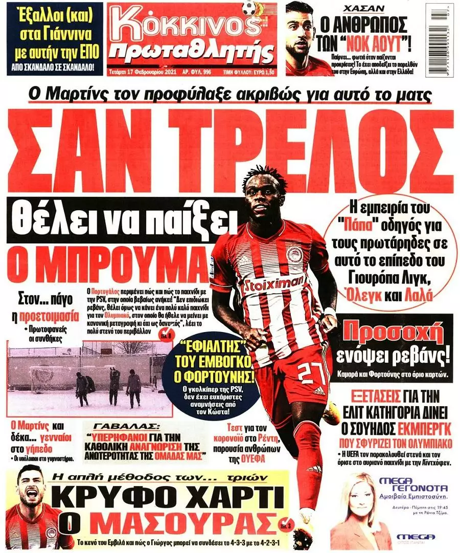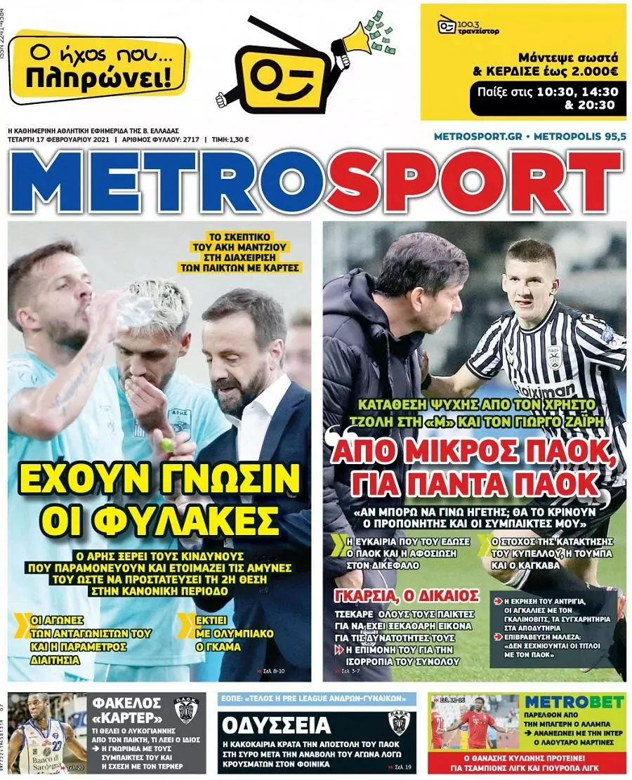 HOT NEWS ΕΚΤΟΣ ΜΗΤΡΩΟΥ Η ΔΑΜΑΣΤΑ ΕΝΟΧΛΗΣΕΙΣ ΣΕΝΓΚΕΛΙΑ ΚΥΠΕΛΛΟ ΕΡΑΣΙΤΕΧΝΩΝ ΚΛΗΡΩΣΗ LIVE OI ΑΓΩΝΕΣ ΤΗΣ ΗΜΕΡΑΣ ΕΦΗΜΕΡΙΔΕΣΚΥΡΙΕΣ ΕΙΔΗΣΕΙΣ Τα αθλητικά πρωτοσέλιδα της ημέρας (17/02) Δημοσιογραφικό Τμήμα 17/02/2021 - 09:19 FacebookTwitterWhatsAppLinkedinEmailΤυπώνωCopy URL Διαβάστε όσα γράφουν τα αθλητικά πρωτοσέλιδα της Τετάρτης, 17 Φεβρουαρίου, σε Αθήνα και Θεσσαλονίκη. ΔΙΑΒΑΣΤΕ ΕΠΙΣΗΣ: Α. Τόσκα: «Έχουμε καλά στοιχεία και παιχνίδι με παιχνίδι θα τα βελτιώνουμε» Με Λασίθι το Ηράκλειο στην πρεμιέρα των Πρωταθλημάτων Μικτών – Όλο το πρόγραμμα Παναθηναϊκός: Επέστρεψαν οι πρώτοι διεθνείς στο Κορωπί LIVE οι αγώνες της Τετάρτης (15/10) ΕΠΣΗ: Οι παρατηρητές στους αγώνες της Τετάρτης (15/10) Κύπελλο Ερασιτεχνών: Οι αντίπαλοι ΠΟΑ και Γιούχτα στη φάση των «32» ΡΟΗ ΕΙΔΗΣΕΩΝ ΑΓ. ΒΑΡΒΑΡΑ Κέντρισε τα βλέμματα το ΠΑΟ Δειλινών-Αγία Βαρβάρα (pics) Πολυχρόνης Αγγελάκης 15/10/2025 16:57 ΓΟΡΤΥΣ Α. Τόσκα: «Έχουμε καλά στοιχεία και παιχνίδι με παιχνίδι θα τα βελτιώνουμε» Πολυχρόνης Αγγελάκης 15/10/2025 16:41 ΟΦΗ Μ. Ράσταβατς: «Θέλουμε να κρατήσουμε τη σοβαρότητα και τη σταθερότητα μας απέναντι στον Παναιτωλικό» Πολυχρόνης Αγγελάκης 15/10/2025 16:19 ΠΑΡΑΣΚΗΝΙΟ Ράγισαν καρδιές στον τελευταίο αποχαιρετισμό του Γιάννη Φλουρή Δημοσιογραφικό Τμήμα 15/10/2025 16:00 ΕΠΣ - ΕΠΟ Με Λασίθι το Ηράκλειο στην πρεμιέρα των Πρωταθλημάτων Μικτών – Όλο το πρόγραμμα Πολυχρόνης Αγγελάκης 15/10/2025 15:48 SUPER LEAGUE 1 Παναθηναϊκός: Επέστρεψαν οι πρώτοι διεθνείς στο Κορωπί Δημοσιογραφικό Τμήμα 15/10/2025 15:15 ΟΦΗ OΦΗ: Συνεχίζεται η προετοιμασία ενόψει Παναιτωλικού Δημοσιογραφικό Τμήμα 15/10/2025 14:57 Όλες οι ειδήσεις ΔΗΜΟΦΙΛΗ LIVE LIVE οι αγώνες της Τετάρτης (15/10) ΕΠΣ - ΕΠΟ ΕΠΣΗ: Οι παρατηρητές στους αγώνες της Τετάρτης (15/10) ΠΟΑ Κύπελλο Ερασιτεχνών: Οι αντίπαλοι ΠΟΑ και Γιούχτα στη φάση των «32» ΜΙΚΤΕΣ Μεγάλη συμμετοχή στις προπονήσεις προεπιλογής Κ14 και Κ16 της ΕΠΣΗ ΠΑΡΑΣΚΗΝΙΟ Αύριο το τελευταίο αντίο στον Γιάννη Φλουρή
