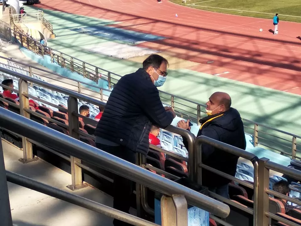 Βέντζος και Σουλτάτος, δύο πρώην πρόεδροι του Εργοτέλη συζητούν στην κερκίδα του Παγκρητίου.
