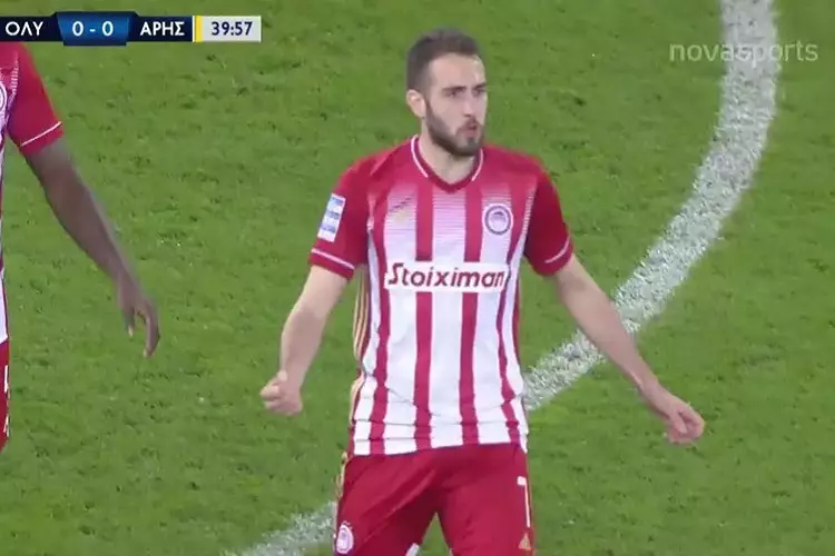 Ο Ολυμπιακός άνοιξε το σκορ κόντρα στον Άρη, όταν η μπάλα μετά από κόντρες, έφτασε στον Ανδρούτσο, ο οποίος μέσα από την περιοχή πάσαρε πολύ έξυπνα στον Φορτούνη, όπου με δυνατό σουτ έκανε το 1-0.