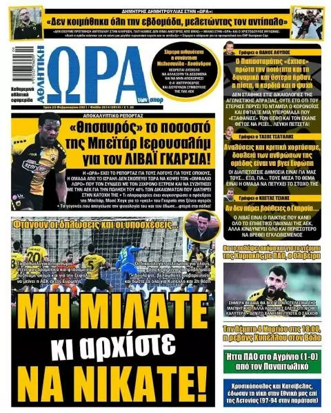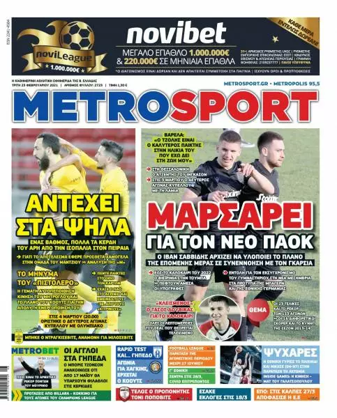 HOT NEWS ΠΡΟΓΡΑΜΜΑ ΤΕΤΑΡΤΗΣ MVP Α1 ΕΠΣΗ ΠΑΤΗΣΕ ΚΟΡΥΦΗ ΕΡΓΟΤΕΛΗΣ ΑΠΟΤΕΛΕΣΜΑΤΑ ΣΑΒΒΑΤΟΚΥΡΙΑΚΟΥ ΕΦΗΜΕΡΙΔΕΣΚΥΡΙΕΣ ΕΙΔΗΣΕΙΣ Τα αθλητικά πρωτοσέλιδα της Τρίτης 23/2 Κώστας Παπαδόπουλος 23/02/2021 - 08:15 FacebookTwitterWhatsAppLinkedinEmailΤυπώνωCopy URL Διαβάστε όσα γράφουν τα πρωτοσέλιδα των αθλητικών εφημερίδων σε Αθήνα και Θεσσαλονίκη. ΔΙΑΒΑΣΤΕ ΕΠΙΣΗΣ: Ψάχνει το πρώτο της τρίποντο η Αγία Βαρβάρα Θέλει να αφήσει πίσω την ήττα η Φαιστός Πρώτη νίκη με «clean sheet» για τις Μοίρες ΕΠΣΗ: Το πρόγραμμα της Τετάρτης (22/10) Στην προπόνηση της Μικτής Κ14 ΕΠΣΗ ο Β. Αμπράμοβ Μικτή Κ14: Οι κλήσεις Παν. Λαδουκάκη για το φιλικό της Τετάρτης (22/10) ΡΟΗ ΕΙΔΗΣΕΩΝ ΑΓ. ΒΑΡΒΑΡΑ Ψάχνει το πρώτο της τρίποντο η Αγία Βαρβάρα Μάνος Φουστανάκης 20/10/2025 23:00 ΦΑΙΣΤΟΣ Θέλει να αφήσει πίσω την ήττα η Φαιστός Μάνος Φουστανάκης 20/10/2025 22:30 ΜΟΙΡΕΣ Πρώτη νίκη με «clean sheet» για τις Μοίρες Μάνος Φουστανάκης 20/10/2025 21:58 ΠΑΟΚ Ανάσα μετά το “σερί” και προετοιμασία για τη δύσκολη έξοδο στον Θραψανό Δημοσιογραφικό Τμήμα 20/10/2025 21:33 ΑΕΚΑΤΣΑΜΠΑ Επιστροφή Μαγάκη, αγωνία για Χατζηανδρέου και Μπάμπη Δημοσιογραφικό Τμήμα 20/10/2025 21:22 ΜΙΝΩΙΚΗ Ψάχνουν… αντίδραση απέναντι στην ΑΕ Κατσαμπά Δημοσιογραφικό Τμήμα 20/10/2025 21:11 ΑΟΤ ΑΟΤ: Στρέφονται στο παιχνίδι με τα Δειλινά Μάνος Φουστανάκης 20/10/2025 20:49 Όλες οι ειδήσεις ΔΗΜΟΦΙΛΗ Α1 ΕΠΣΗ ΕΠΣΗ: Το πρόγραμμα της Τετάρτης (22/10) ΜΙΚΤΕΣ Στην προπόνηση της Μικτής Κ14 ΕΠΣΗ ο Β. Αμπράμοβ ΕΠΣ - ΕΠΟ Μικτή Κ14: Οι κλήσεις Παν. Λαδουκάκη για το φιλικό της Τετάρτης (22/10) ΜΙΚΤΕΣ Εικόνες απο τη σημερινή (20/10) προπόνηση της Μικτής Κ14 SUPER LEAGUE 1 Σκηνές ντροπής στο ΑΕΛ-Ολυμπιακός Κ19