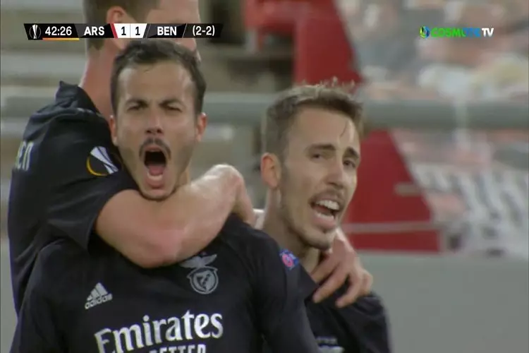 Η Μπενφίκα στο 42ο λεπτό έφτασε στο 1-1 κόντρα στην Άρσεναλ στο Γ. Καραϊσκάκης χάρη στο όμορφο γκολ του Γκονσάλβες με απευθείας εκτέλεση φάουλ.