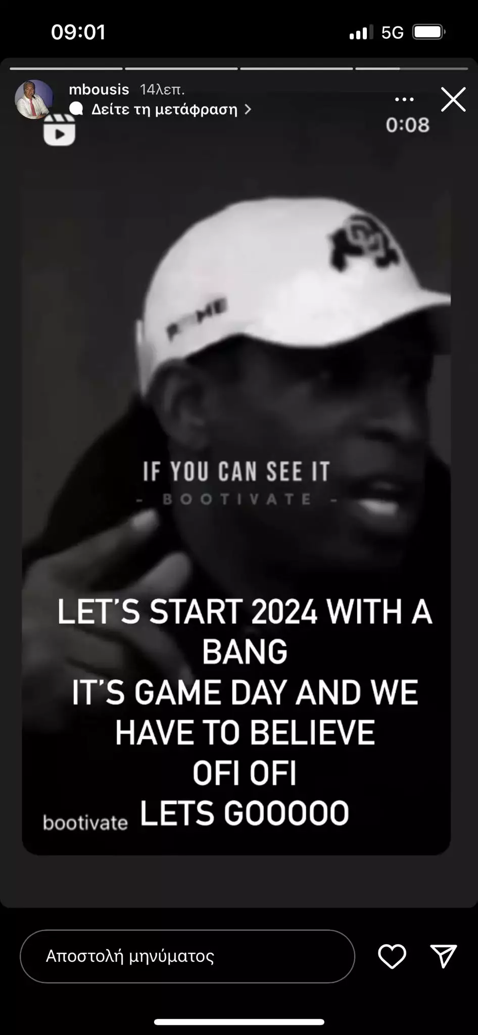 Ο ίδιος ανέφερε: «Ας ξεκινήσουμε το 2024 δυναμικά. Είναι ημέρα παιχνιδιού και πρέπει να το πιστέψουμε. ΟΦΗ, ΟΦΗ. Πάμε»