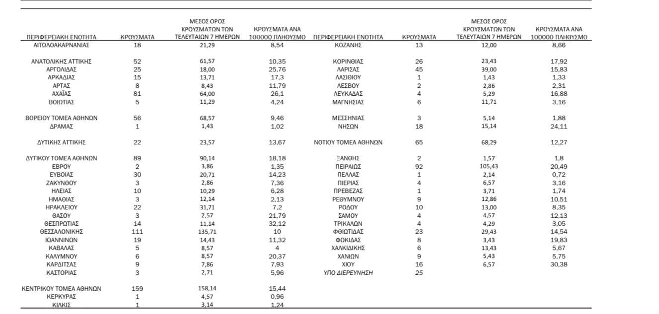 Ο ΕΟΔΥ το απόγευμα της Δευτέρας ανακοίνωσε 1176 νέα κρούσματα στην χώρα μας εκ των οποίων τα 41 εντοπίστηκαν στην Κρήτη.
