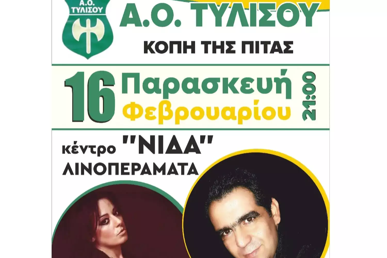 Η ομάδα της Τυλίσου θα κόψε την πίτα της την ερχόμενη Παρασκευή 16/2, σε μία όμορφη εκδήλωση στο κέντρο «Νίδα» στα Λινοπεράματα. Στο τραγούδι θα είναι η Ραφεάλλα Ηγουμενάκη και ο Βαγγέλης Καλλέργης, με τον Μανωλη Βερτούδο στα πλήκτρα και Γιάννη Φουντουλάκη στο μποζούκι.
