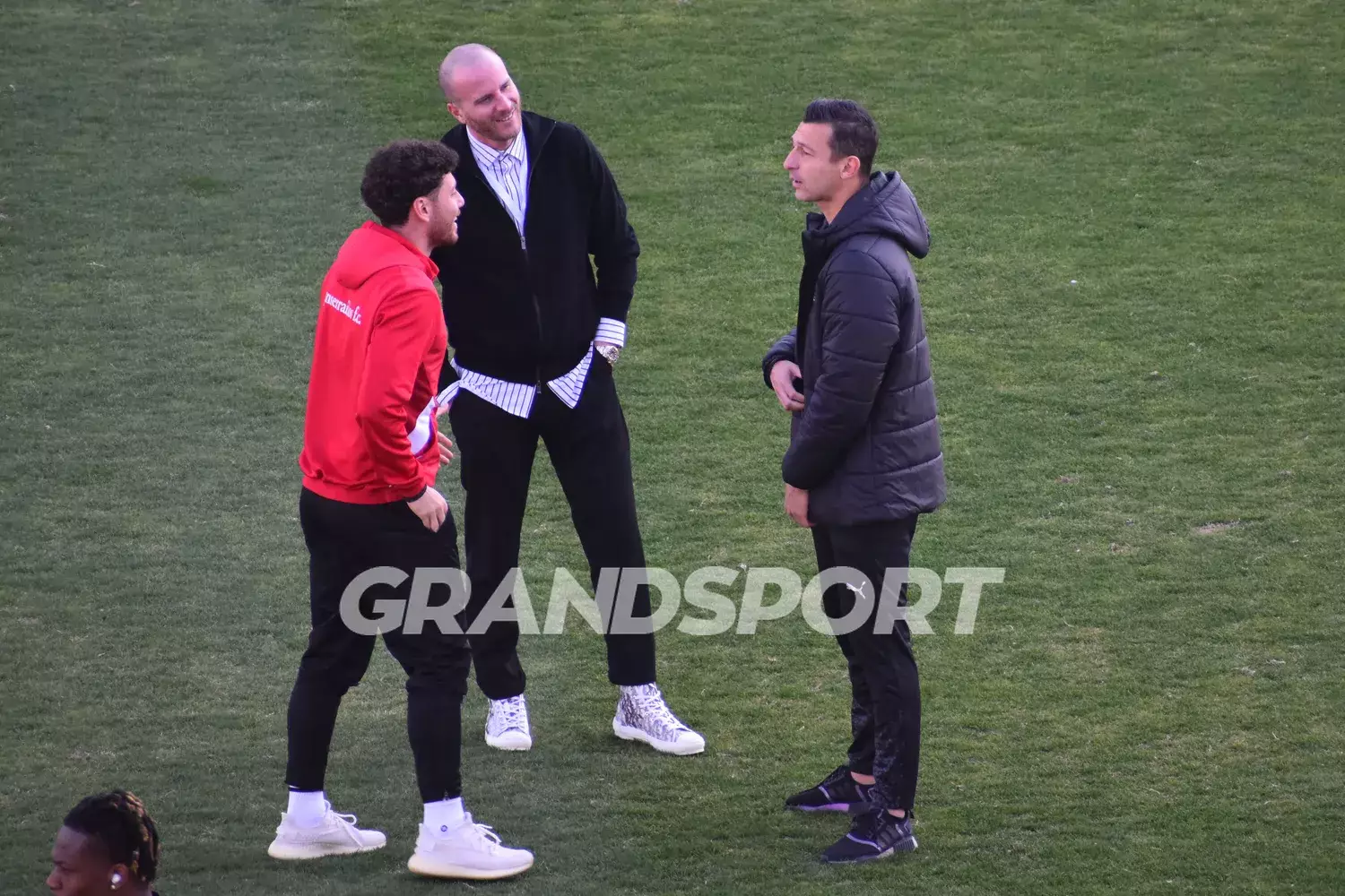 Στην αναγνωριστική βόλτα των δύο ομάδων Απόστολος Διαμαντής, Παναγιώτης Δεληγιαννίδης και Τάσος Παπάζογλου, είχαν θερμό τετ α τετ με τους πρώην συμπαίκτες τους αλλά και προπονητές.