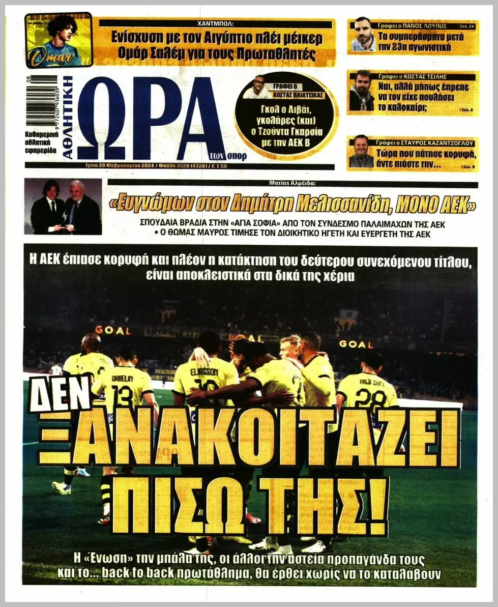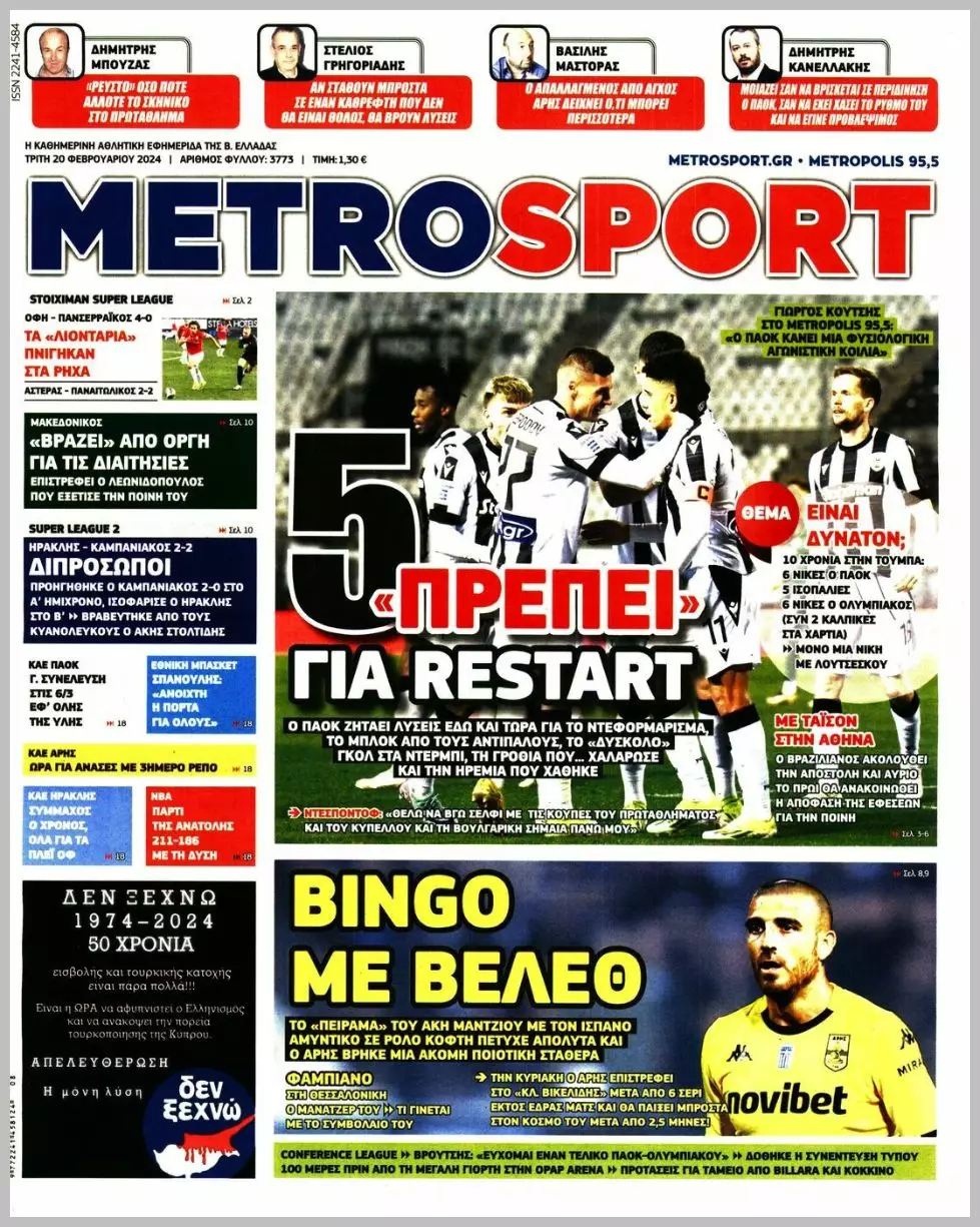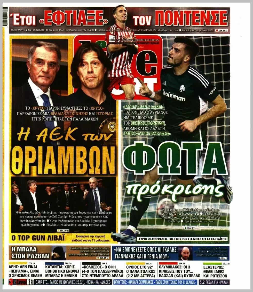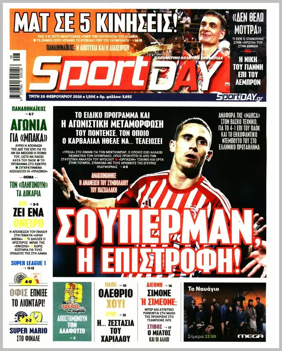 Τα αθλητικά πρωτοσέλιδα της Τρίτης (20/2)