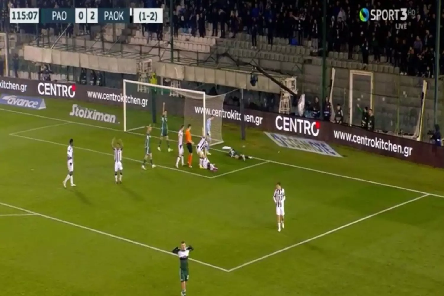 Συγκεκριμένα, συγκρούστηκε κεφάλι με κεφάλι με τον Βαγιαννίδη και έπεσε άτσαλα στον αγωνιστικό χώρο.