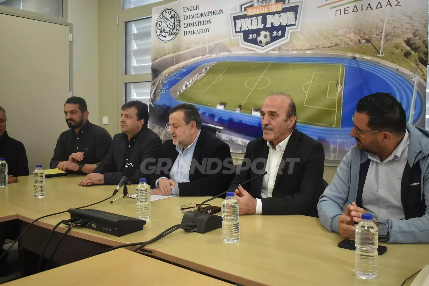 Στη Συνέντευξη Τύπου το παρόν έδωσαν το Δ.Σ της ΕΠΣΗ και η Επιτροπή Κυπέλλου του 3ου Final Four, ο Δήμαρχος Μινώα Πεδιάδας Βασίλης Κεγκέρογλου, στελέχη της Δημοτικής Αρχής, αθλητικοί φορείς και τοπικές ομάδες του Δήμου, όπως και ο Αντιπεριφερειάρχης Ηρακλείου, Νίκος Συριγωνάκης, με τους διοργανωτές να δίνουν όλες τις λεπτομέρειες για τη μεγάλη γιορτή του ποδοσφαίρου.