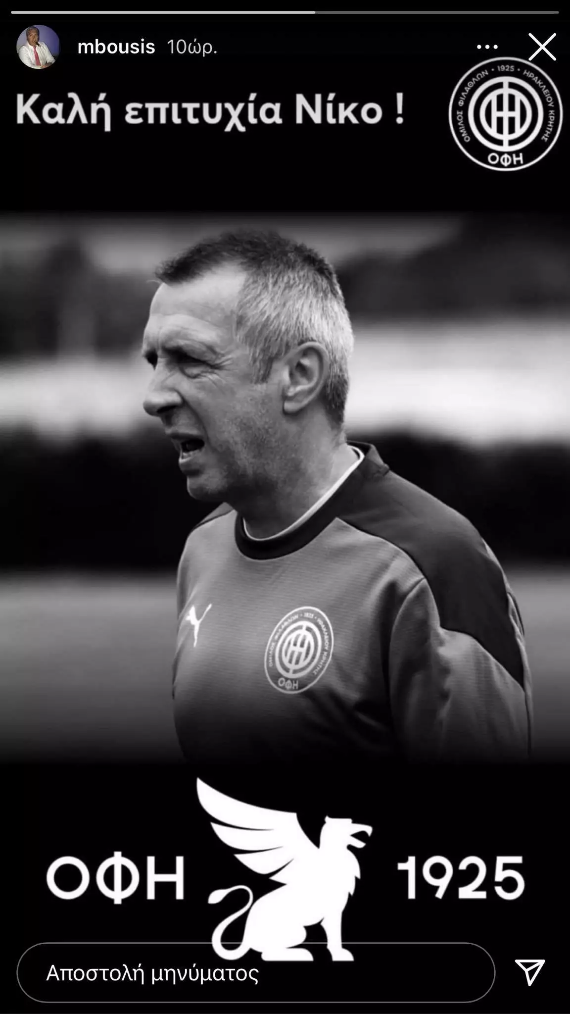 Μάλιστα ο ιδιοκτήτης της ΠΑΕ, Μιχάλης Μπούσης με ανάρτηση του προσωπική του σελίδα στα σόσιαλ ευχήθηκε στον Νίκο Νιόπλια καλή επιτυχία.