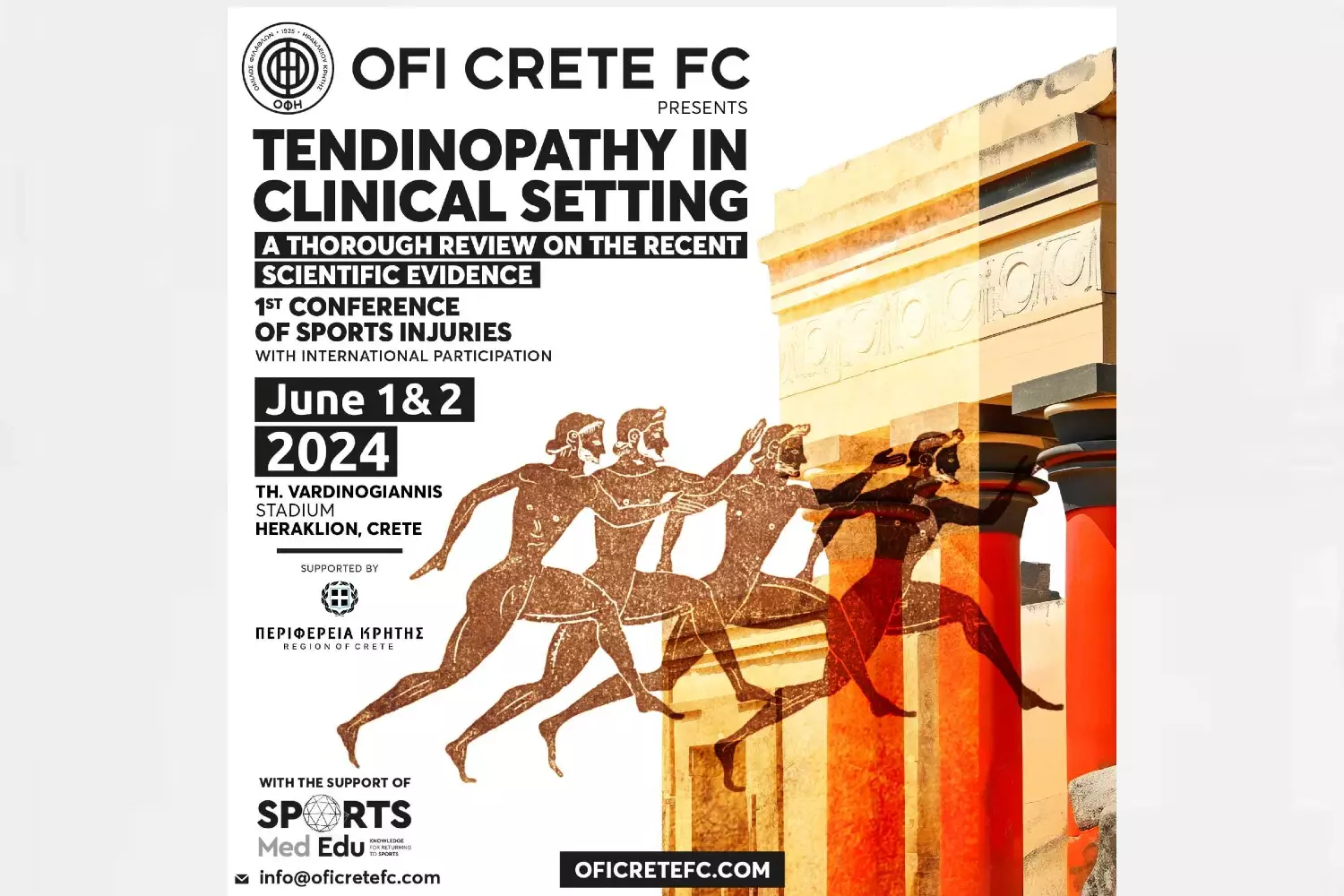 Η ΠΑΕ ΟΦΗ ανακοινώνει το αναλυτικό πρόγραμμα και τους ομιλητές για το 1o αθλητιατρικό συνέδριο με τίτλο : «Tendinopathy in clinical setting. A thorough review on the recent scientific evidence», το οποίο θα διεξαχθεί στο Ηράκλειο το διήμερο 1-2 Ιουνίου 2024, με την υποστήριξη της Περιφέρειας Κρήτης.