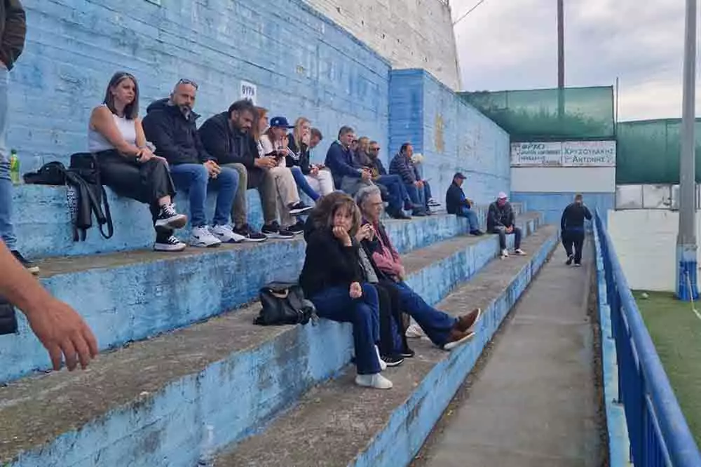 Στην παρακάτω φωτογραφία, η… γωνία που τοποθετήθηκαν φίλοι και διοικούντες του ΑΟΑΝ, όπου δεν υπάρχουν ούτε καν πλαστικά καθίσματα, για να καθίσουν: