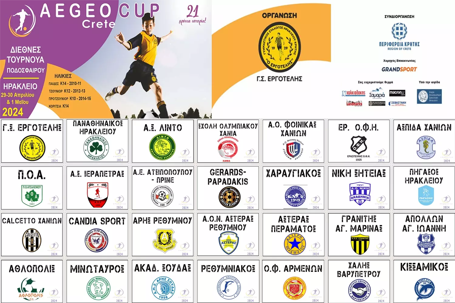 Στη τελική ευθεία βρίσκονται οι διοργανωτές του 21ου Aegeo Cup που διεξάγεται και φέτος από τον Γ.Σ. Εργοτέλης και με συνδιοργανώτρια την Περιφερειακή Διεύθυνση Κρήτης που πάντα αποτελεί αρωγό αθλητικών γεγονότων στο Ηράκλειο!