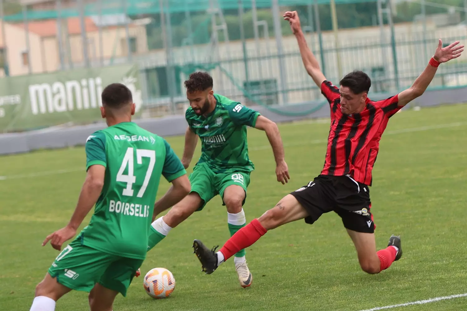 Στο 40’ η Παναχαική απείλησε με τον Ντε Τόμας, όμως το σουτ του δεν ανησύχησε τον Πρινιωτάκη.