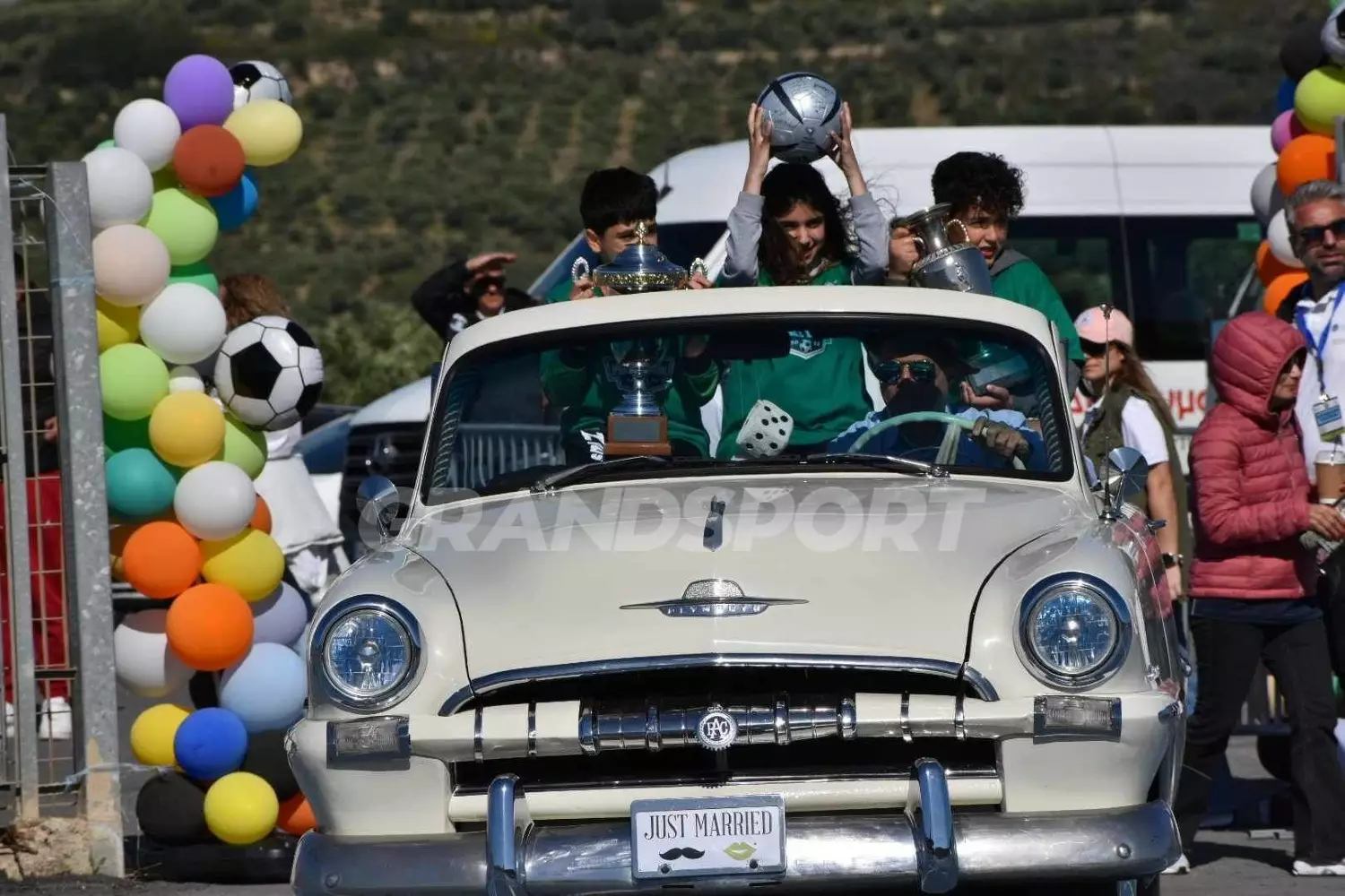Και φυσικά η είσοδος της στον αγωνιστικό χώρο, θα γινόταν με… ξεχωριστό τρόπο, όπως και έγινε με μια αντίκα και μικρά παιδιά να συνοδεύουν το… τόπι του τελικού μέσα στον αγωνιστικό χώρο!