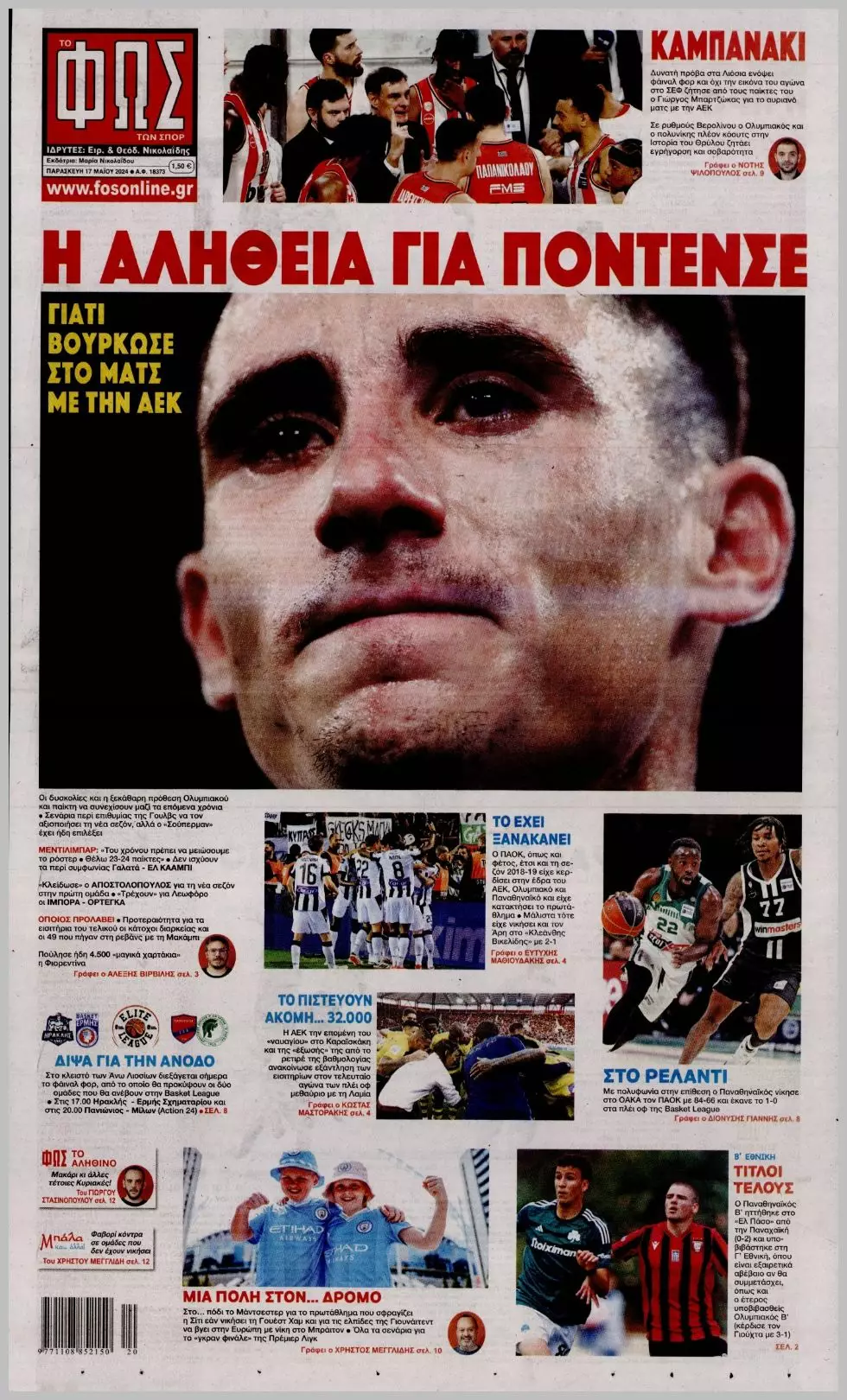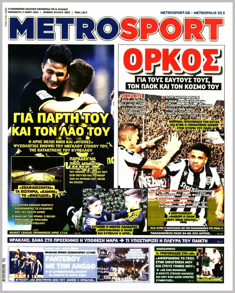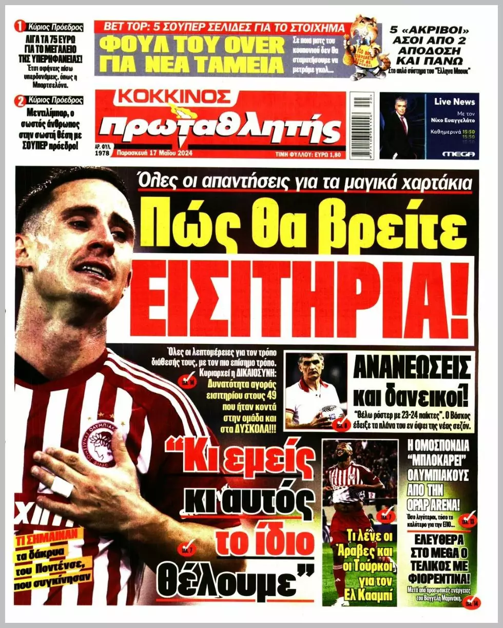 Τα αθλητικά πρωτοσέλιδα της Παρασκευής (17/5)