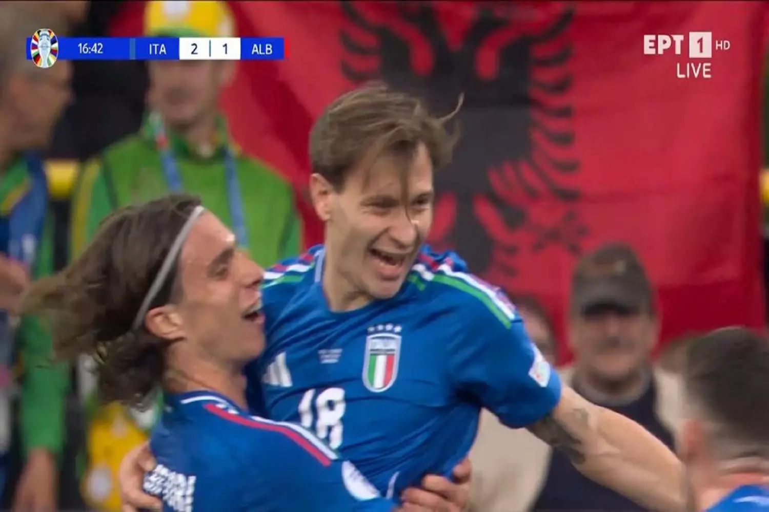 Μόλις 15 λεπτά κράτησε η χαρά των Αλβανών, αφού η Ιταλία κατάφερε να γυρίσει το παιχνίδι με τα γκολ των Μπαστόνι και Μπαρέλα!