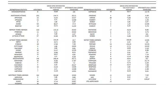 Από αυτά, 30 εντοπίστηκαν στην Κρήτη. Ειδικότερα, 15 στο Ηράκλειο, 1 στο Λασίθι, 3 στο Ρέθυμνο και 11 στα Χανιά.