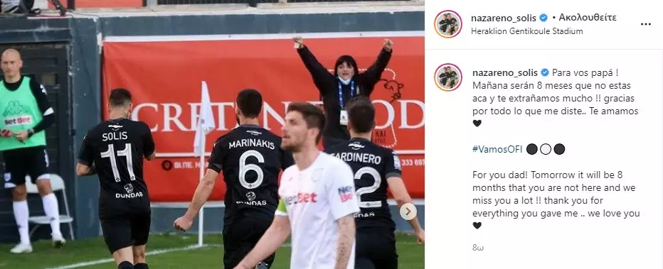 Ο επιθετικός του ΟΦΗ, με ανάρτηση του στο instagram, έγραψε το μήνυμα «Για σένα μπαμπά! Αύριο κλείνουν 8 μήνες που δεν είσαι εδώ και μας λείπεις τόσο πολύ! Σε ευχαριστώ για όλα όσα μου έδωσες… σε αγαπάμε».