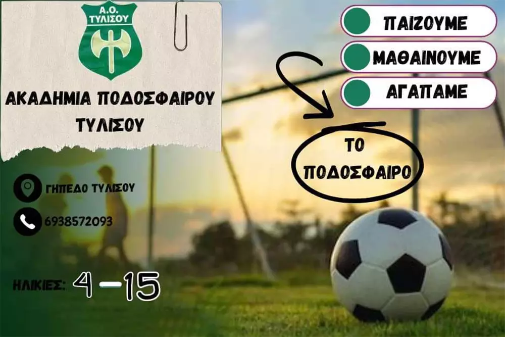 Στην ανακοίνωσή της η Τύλισος, αναφέρει: «⚽ Γίνε μέλος της μεγάλης Αθλητικής Οικογένειας μας!