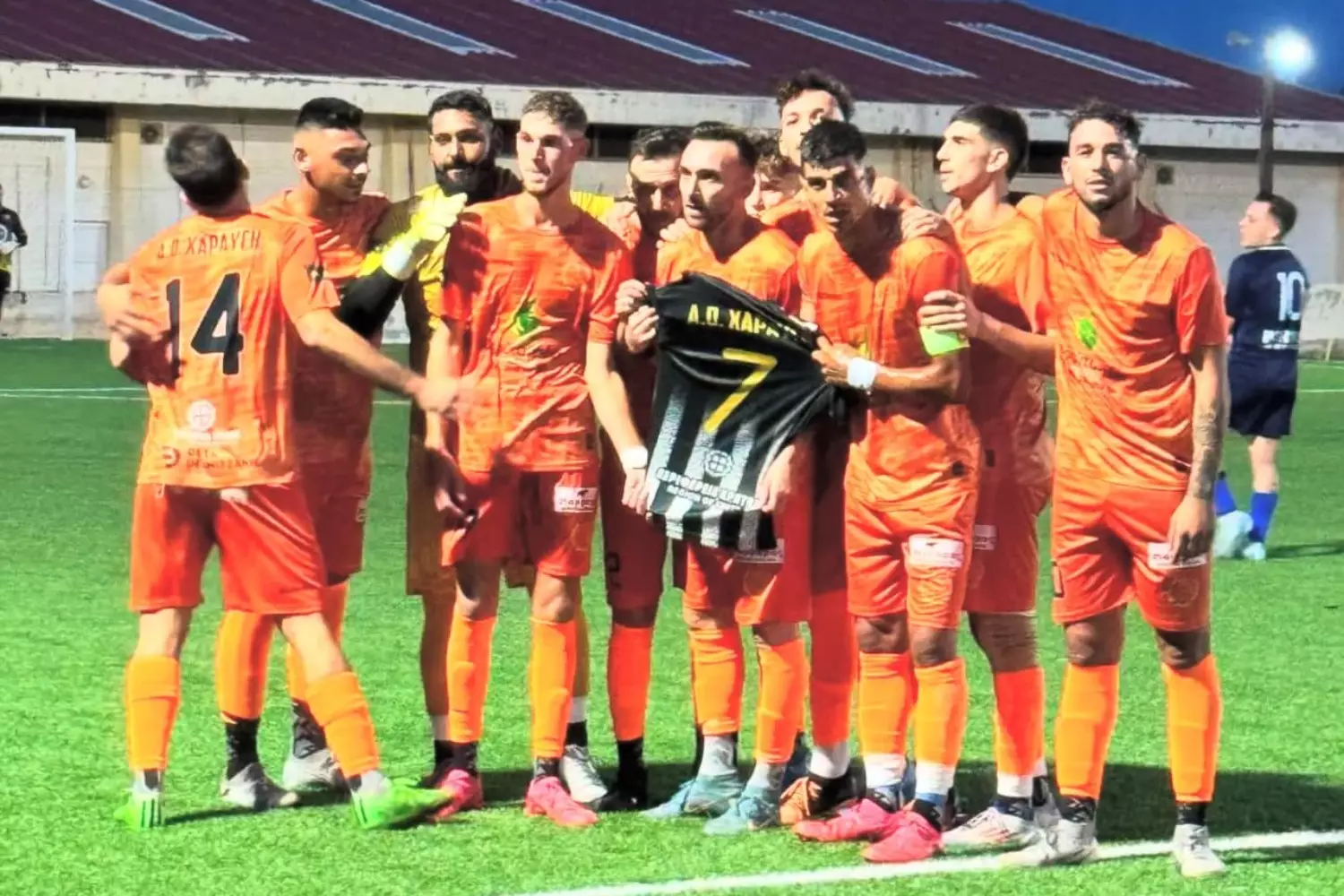 Οι ποδοσφαιριστές της Χαραυγής αφιέρωσαν την νίκη απέναντι στους Κουνάβους στον συμπαίκτη τους, Βαγγέλη Βασιλείου.