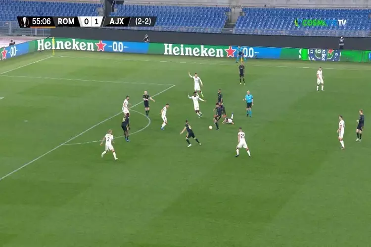 Ο Άγιαξ πέτυχε και δεύτερο γκολ στο παιχνίδι με την Ρόμα, ωστόσο αυτό ακυρώθηκε για επιθετικό φάουλ μετά από την χρήση του VAR.