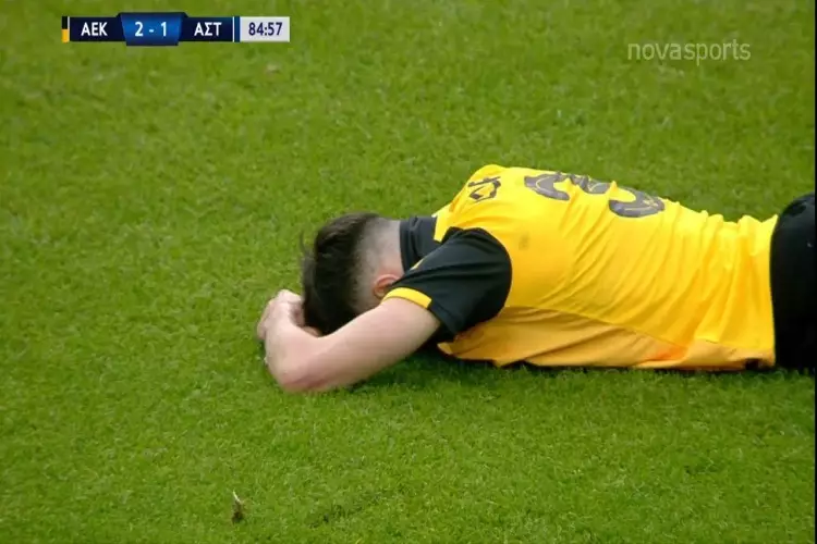 Ο Έλντερ Λόπες στο 85ο λεπτό έκανε το 2-1 για την ΑΕΚ, ύστερα από ασίστ του Πέτρου Μάνταλου και το πανηγύρισε έντονα.