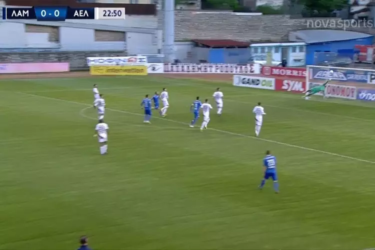Στο 23ο λεπτό η Λαμία δημιούργησε την πρώτη της ευκαιρία στο παιχνίδι με τον Μαρτίνεθ να κάνει ένα σουτ βολίδα έξω από την περιοχή, αλλά ο Νάγκι έκανε τρομερή επέμβαση και κράτησε το 0-0.