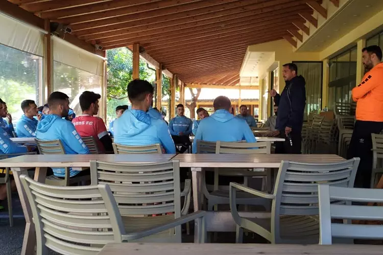 Ο ικανός τεχνικός μίλησε στους ποδοσφαιριστές, επισημαίνοντας χαρακτηριστικά: «Πρώτα απ’ όλα πρέπει να είμαστε οικογένεια, να ευχαριστιόμαστε το ποδόσφαιρο και να βοηθάει ο ένας τον άλλο. Βάλτε λίγο τον εγωισμό σας». Και συνέχισε: «Ήρθα στην ομάδα γιατί πιστεύω σε σας, γιατί η διοίκηση αγαπάει την ομάδα, όλοι μου είπαν πως είστε οι καλύτεροι πάρα τη στεναχώρια τους. Κάντε αυτόν τον άνθρωπο που σας τα παρέχει όλα και όλους όσους ασχολούνται με την ομάδα χαρούμενους».