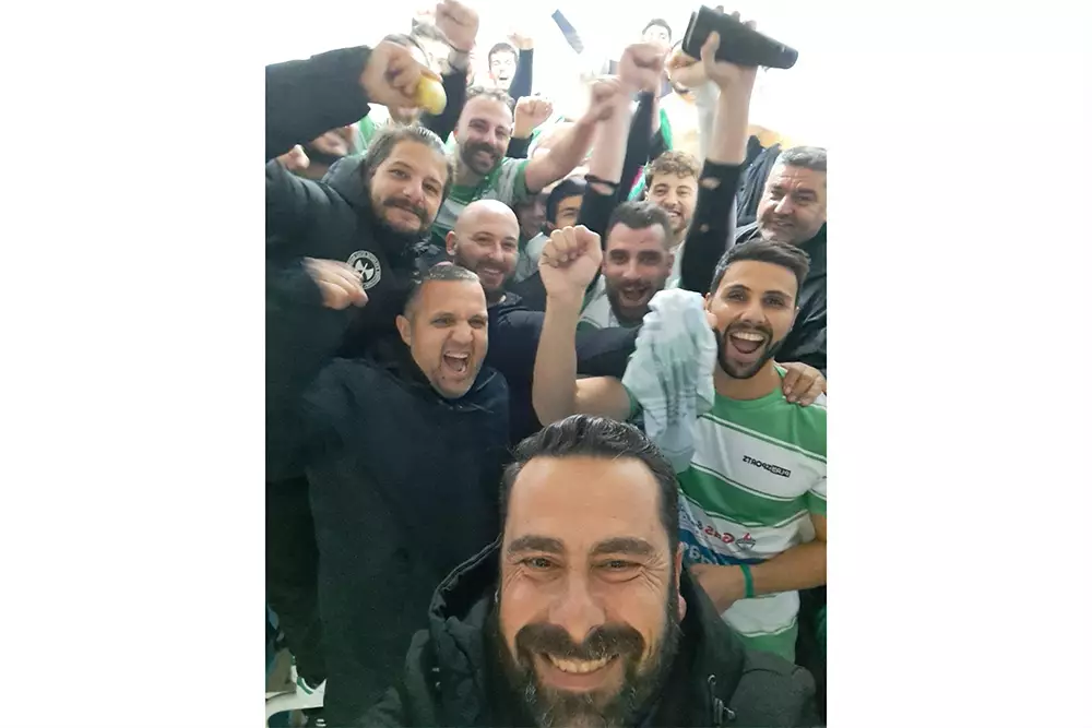 Η ομάδα του Νίκου Φανουράκη φαίνεται στην συγκεκριμένη φωτογραφία να πανηγυρίζει έξαλα το αποτέλεσμα που έφερε απέναντι στην πρωτοπόρο Χαραυγή.