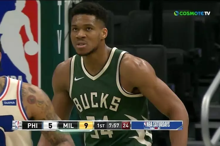 Ο Γιάννης Αντετοκούνμπο έκλεψε τη μπάλα από την άμυνα και μας χάρισε ένα πολύ όμορφο κάρφωμα, στο παιχνίδι με τους 76ers.